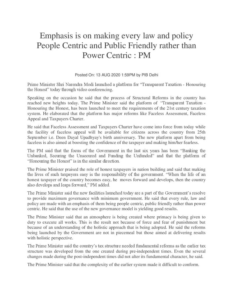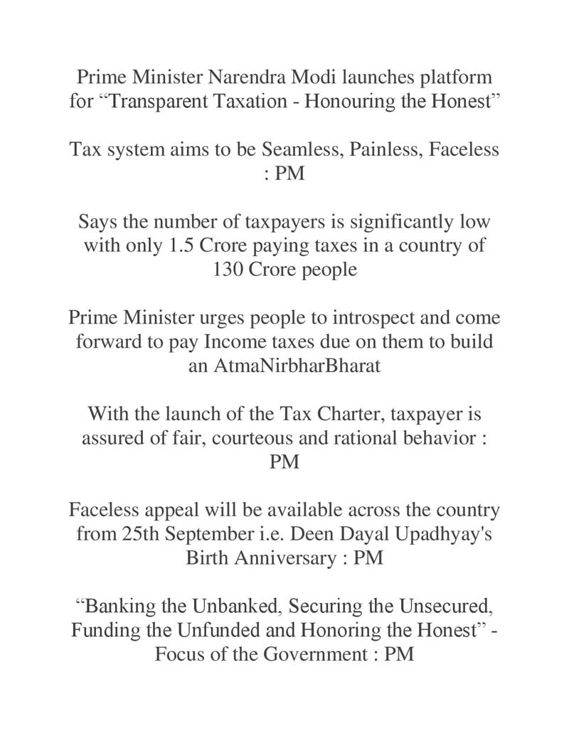 Launching of a platform for "Transparent Taxation-Honouring the Honest"