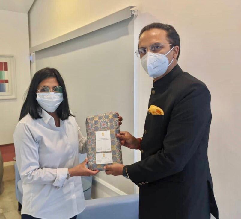 Ambassador H.E. Shri Abhishek Singh called on the Executive Vice President of the Bolivarian Republic of Venezuela, H.E. Ms. Delcy Rodríguez and discussed issues of bilateral importance in the Pharmaceutical, Health and Commercial sectors.