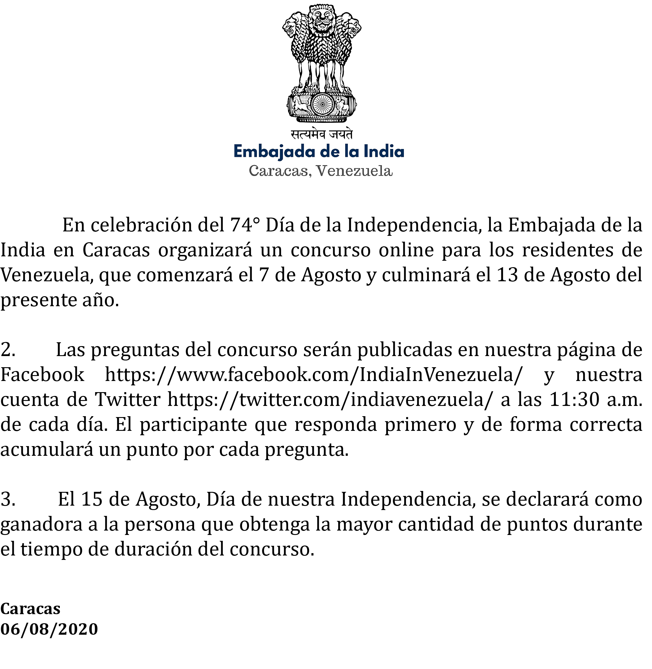 Concurso online sobre el 74 Dia de la Independencia