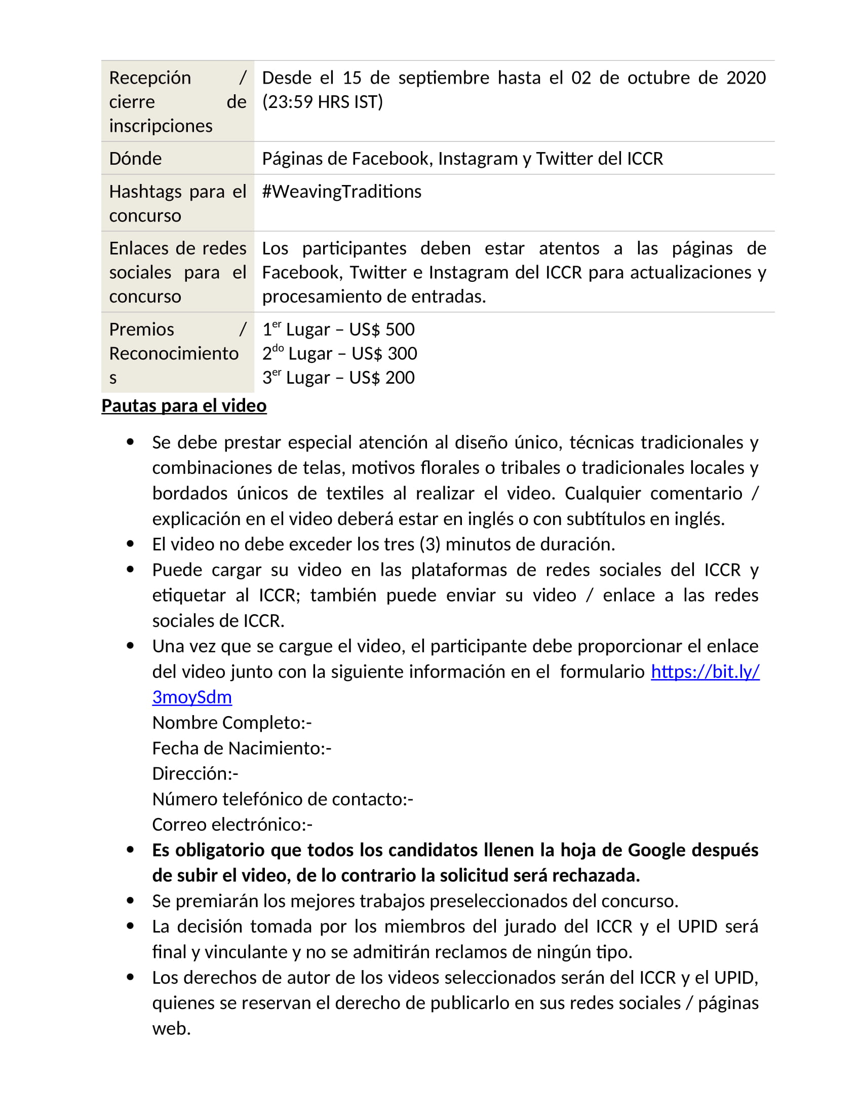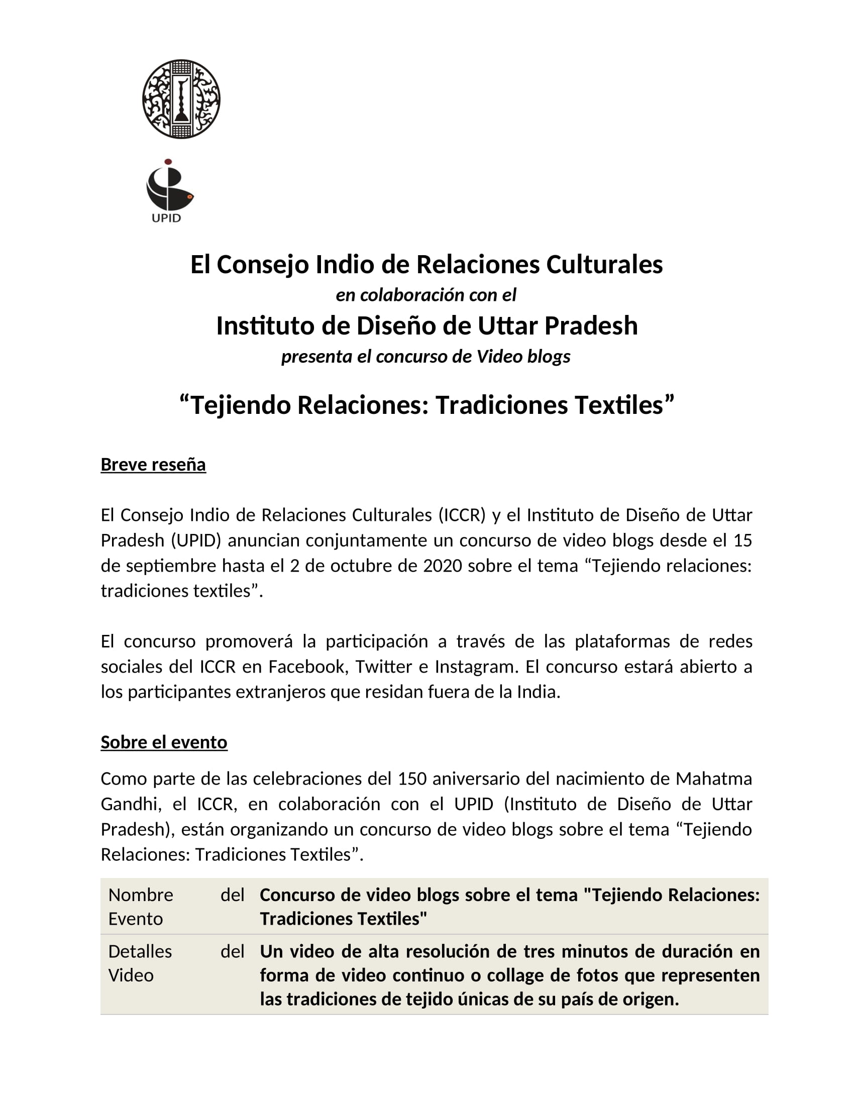 Concurso de video blogs organizado por el ICCR y el Instituto de Diseno de Uttar Pradesh (UPID) sobre el tema "Tejiendo tradiciones: relaciones textiles"