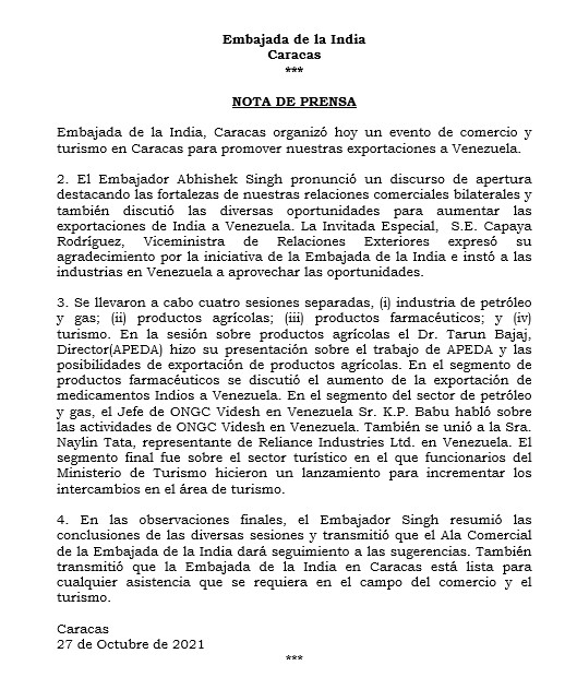 NOTA DE PRENSA- EVENTO DE COMERCIO Y TURISMO- 27 de Octubre de 2021